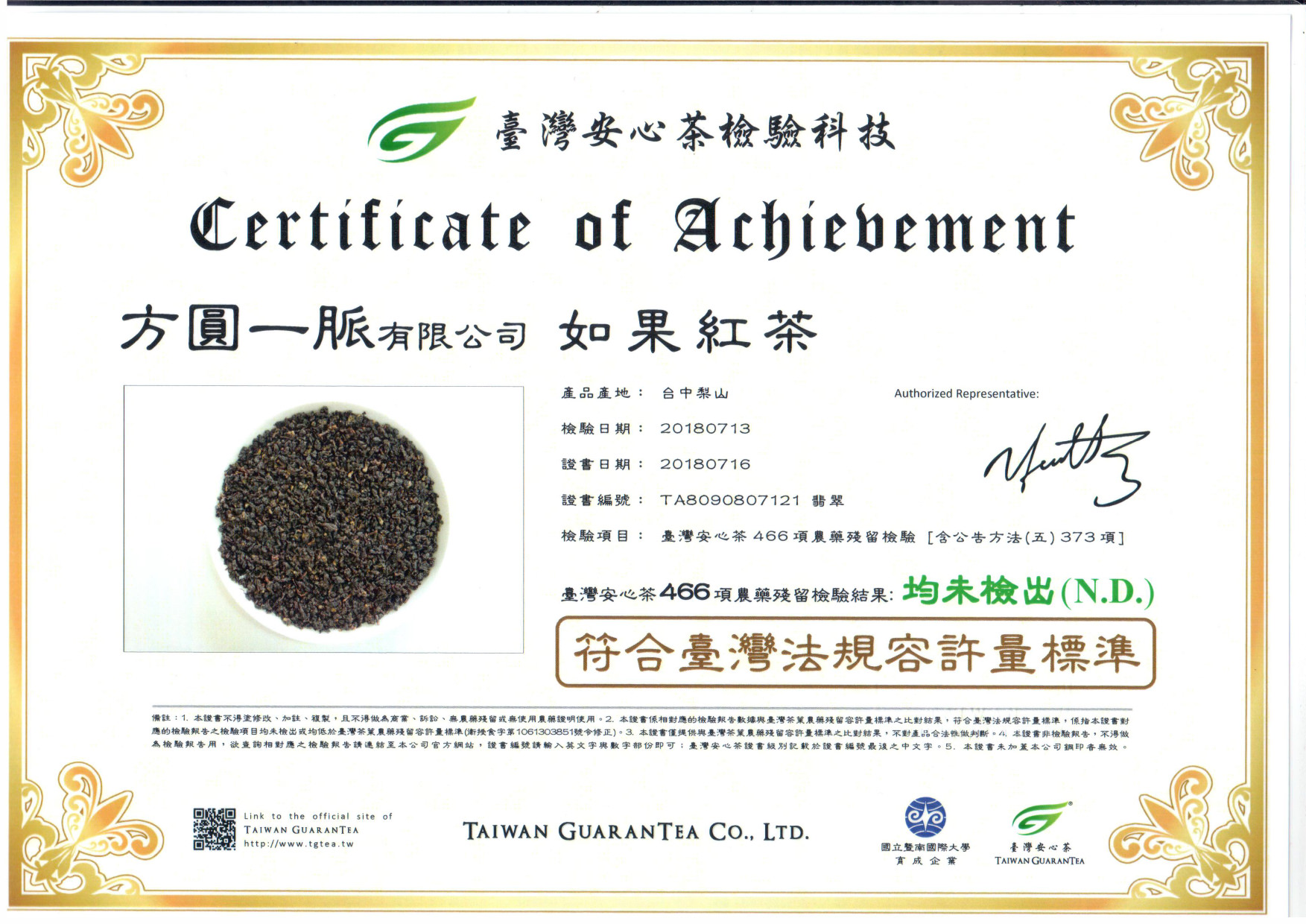 如果紅茶檢驗報告2018-01